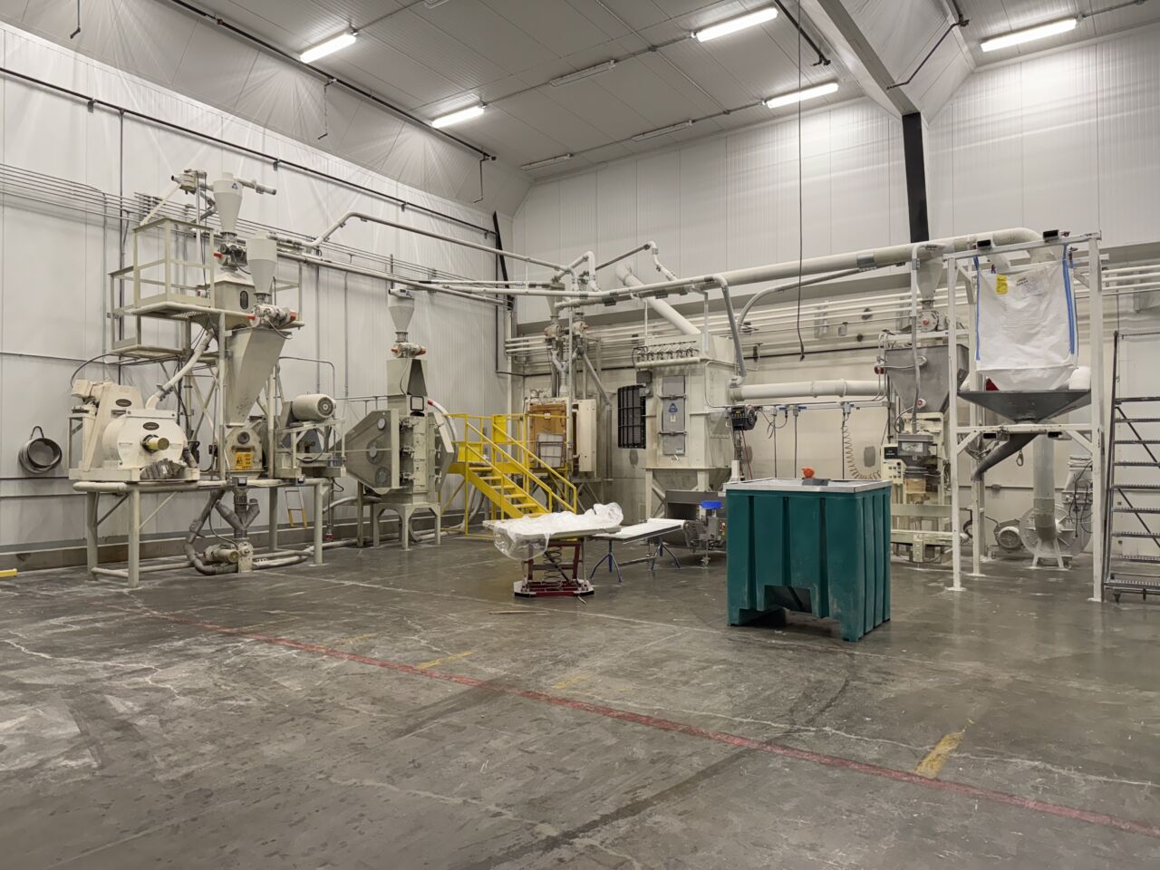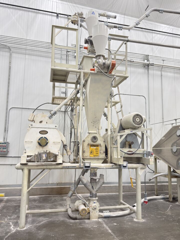 2,000 Lbs. To 2,500 Lbs./Hr. Custom Designed. Milling Line for Grinding Spices. The System Includes a Pre-Breaker. 100 Hp. And 40hp. Universal Mills. 2) Sifters, Pneumatic Conveyors, Dust Collection, MCCs, PLCs, and HMI Automation Controls.